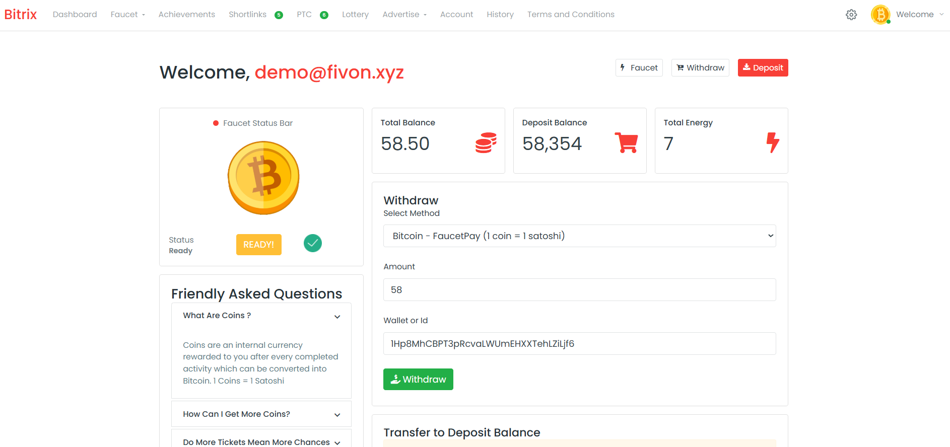 BTCRIX helps you turn your faucet into a profitable business. The integrated ad manager supports multiple ad networks (including pop ads, banner ads, and shortlinks). The referral and reward systems boost traffic and engagement — increasing your overall revenue potential.