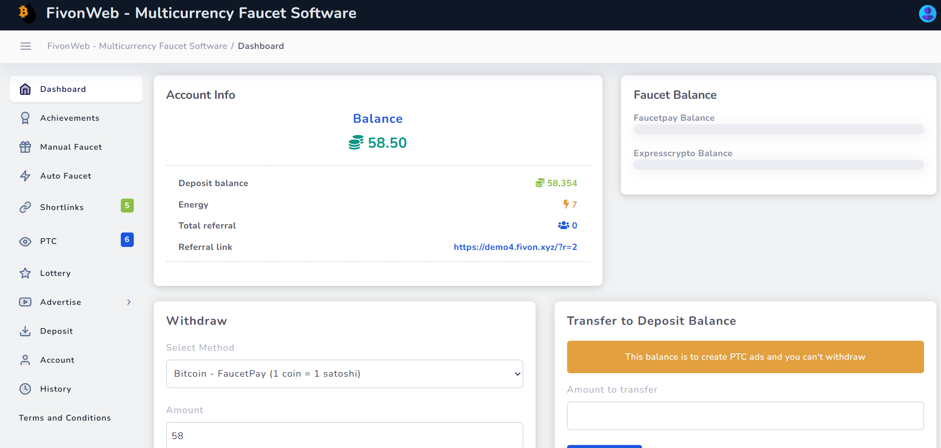Ad Management Tools – Monetize your faucet with ads, popups, or shortlinks directly from your dashboard.