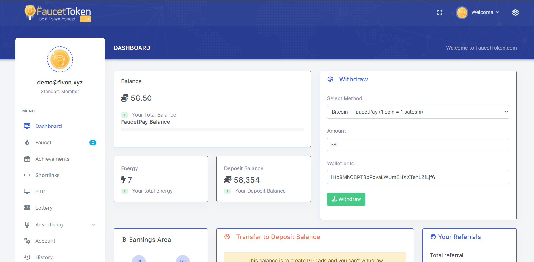 Auto Faucet Mode – Let users earn automatically with adjustable intervals and limits.